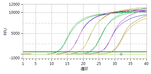 1.荧光阈值:在荧光扩增曲线指数增长长期设定一个荧光强度标准(即PCR扩增产物量标准)。荧光阈值可设定在指数扩增阶段任意位置上,但实际应用要结合扩增效率,线性回归系数等参数来综合考虑。